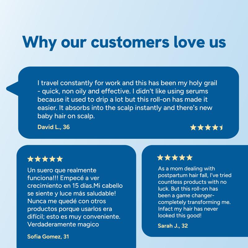 This hair growth roll on serum has transformed the lives of over 15,000 customers who discovered that their follicles just need to be turned on.